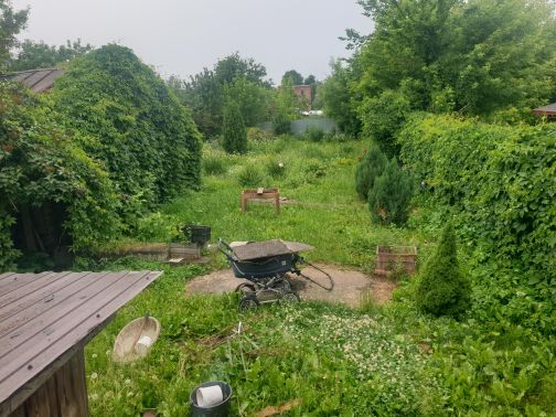 Есть двухэтажная баня, гараж на две машины с раскатными воротами, облагороженный участок с цветущими и плодоносящими деревьями, грядки, виноград.