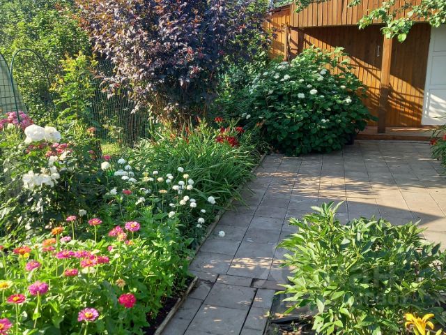 Участок 8 соток (фактически 15 соток), ухоженная территория с плотным газоном, много плодовых и декоративных кустарников, многолетних цветов, огород. Дом два этажа (1 этаж из бруса: 1 помещ. - гостиная, 2 помещ.- моечная, 3 помещ.- парилка с печкой на дровах; 2 этаж каркасный с утеплителем 20 см.: 1 комната спальня), внутри и снаружи дом отделан доской имитация бруса с утеплителем, просторная открытая веранда 3 х 3 м. Кровля мягкая черепица. Рядом с домом душ с электроподогревом воды. С другой стороны дома сарай-дровник. Газ по границе участка.