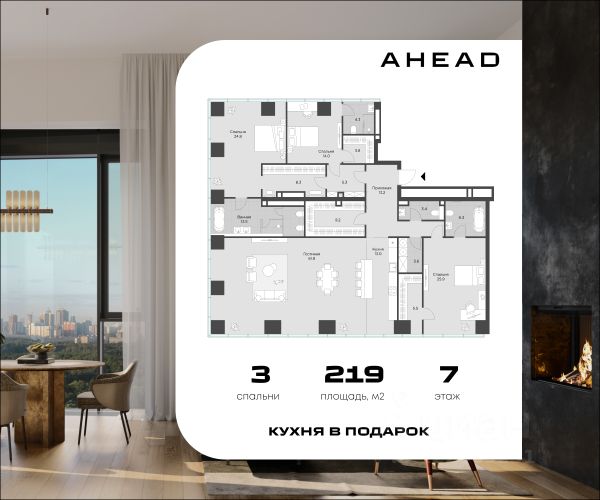 3-комн. апарт. · 219 м² · 7/17 этаж