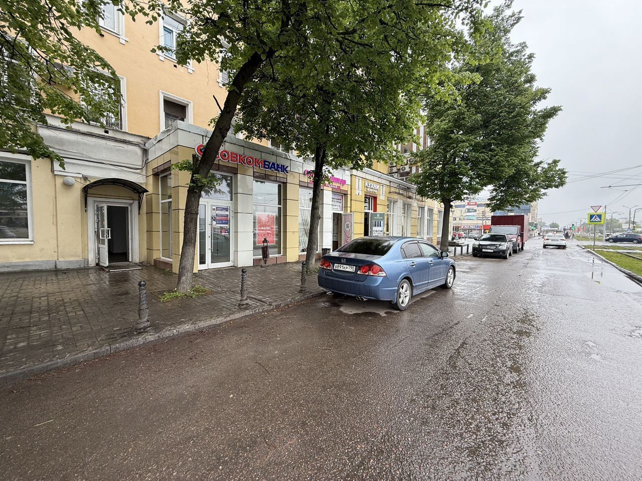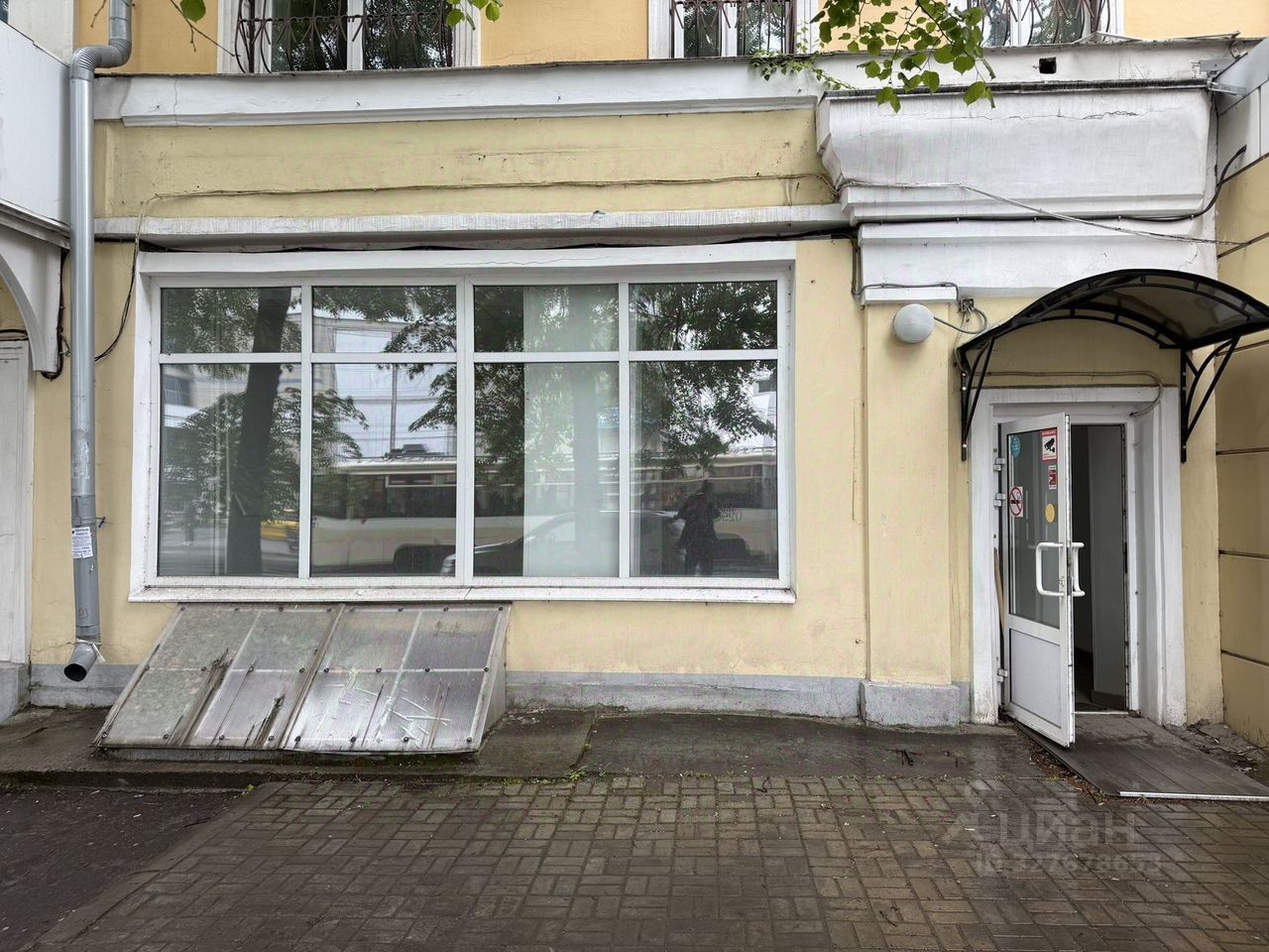 Первая линия главной улицы Коломны. Первый этаж жилого дома. Отдельный вход с улицы. Рядом остановка трамвая, через дорогу ж/д станция Голутвин, интенсивный пешеходный трафик.