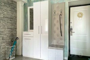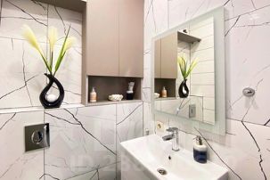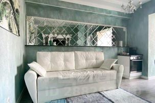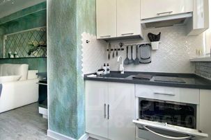 Квартира выполненная в стиле арт-деко состоит из двух комнат и просторной гардеробной ,одна из комнат соединена с обеденной зоной и кухней , где есть все для комфортного приготовления и приема пищи: