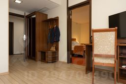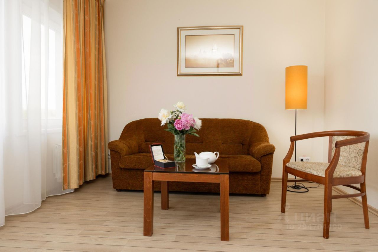 Комфортабельная двухкомнатная каюта: уютная спальня, гостиная с мягкой мебелью, журнальным столиком и бюро, ванная комната с душевой кабиной.
