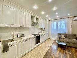 огромная кухня гостиная позволяет пообедать всей семьей.