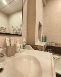 Тёплый пoл, одноразовые зубные щетки с пастой, гигиенические принадлежности, полотенца 100% хлопок, фен, принадлежности для душа (шампунь, гель для душа и мыло премиум качества!). Путешествуйте налегке и наслаждайтесь сервисом.