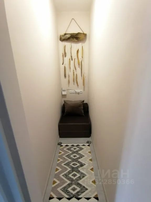 В квартире 1 изолированная спальня (8 м2), кухня с раскладным диваном (18 м2), потайная комната (2, 5 м2), санузел с ванной (4 м2).