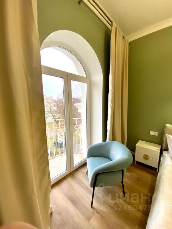 Переступив порог, вы попадаете в царство просторных, светлых залов под огромными, парящими потолками. Их украшает изысканная, ажурная лепнина, искусно реставрированные карнизы и благородные люстры, отбрасывающие на стены игру теплого, золотистого света. Сердце гостиной — изящная, плавная арка, которая ведет к завораживающему французскому балкону. Это ваша личная смотровая площадка, откуда открывается умиротворяющий, живописный вид.