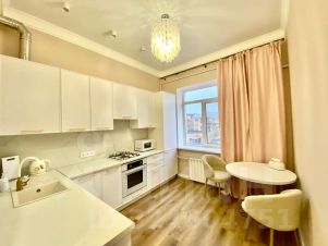 Представьте себе не просто апартаменты, а настоящую архитектурную поэму сталинской эпохи, бережно возрожденную к новой жизни. Это — шикарная, величественная сталинка после тотального, вдумчивого ремонта, где каждая деталь говорит о вашем безупречном вкусе.