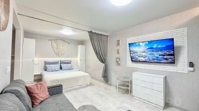 Оснащенность апартаментов всем необходимым для комфортного отдыха: двуспальная кровать с ортопедическим матрасом и раскладной диван-кровать (4 спальных места), свежее постельное белье, комплект полотенец, халаты и тапочки, скоростной Wi-Fi, телевизор со Smart-TV ( комната и кухня), средства гигиены.