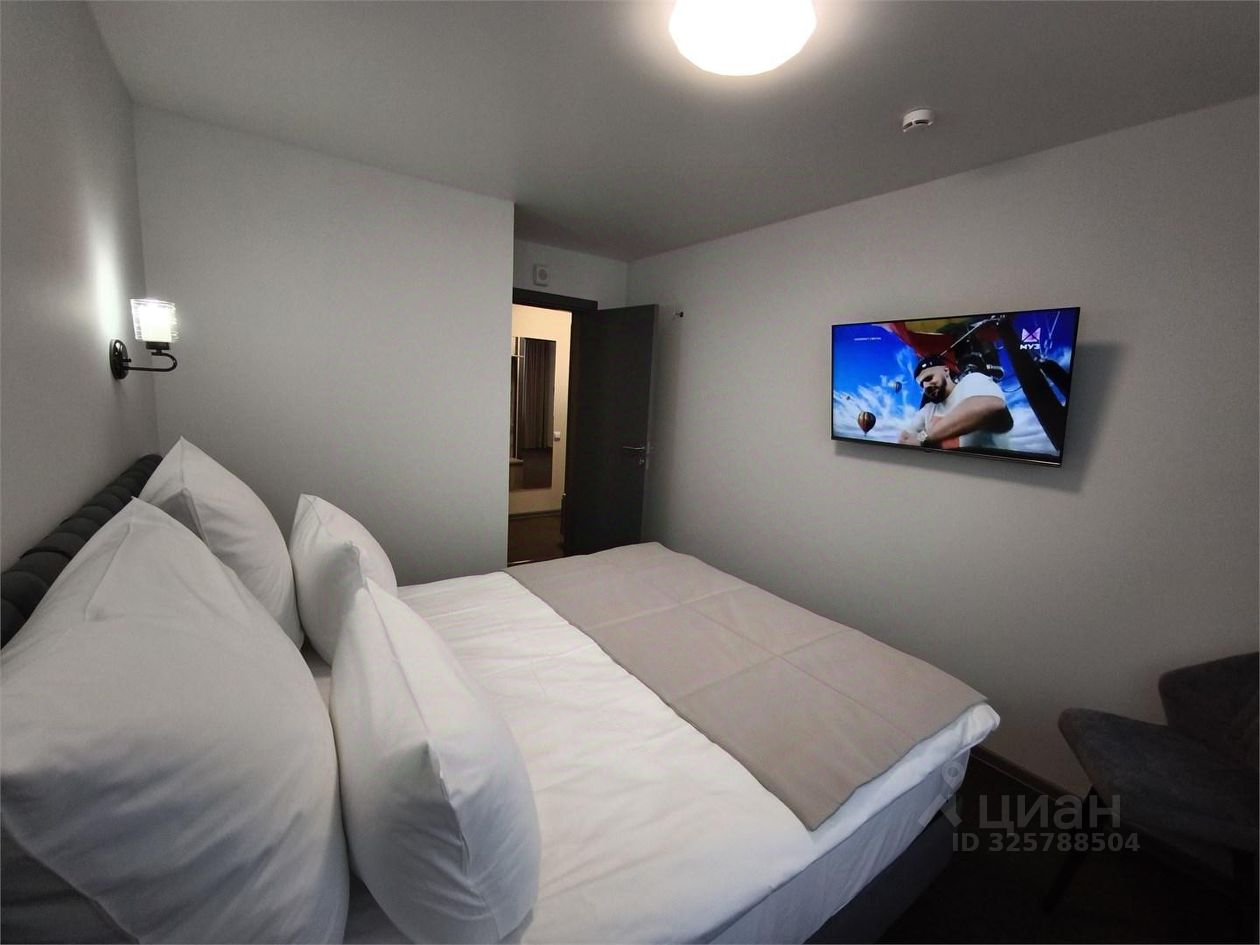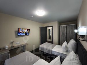 В номере комфортабельная кровать с матрасом класса "Люкс" высотой 24 см и шириной 160 см в одной комнате, и две одноместные кровати с такими же матрасами в другой. Рабочая зона с удобным вращающимися креслами, эргономичными столами и продуманным освещением для работы и отдыха. Мебель бизнес-класса, оформленная в современных оттенках "бетон пайн", сочетающая функциональность и эстетику. Холодильник в каждой комнате. В данной категории номеров установлен большой шкаф-купе глубиной 80см, позволяющий разместить большое количество вещей в случае длительного проживания или при заселении семьи из 3х 4х человек, что позволяет комфортно проживать и не загромождать пространство.