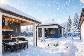 Летом — свежий воздух, зелёные ели и ухоженный газон, зимой — уют и тепло бани.