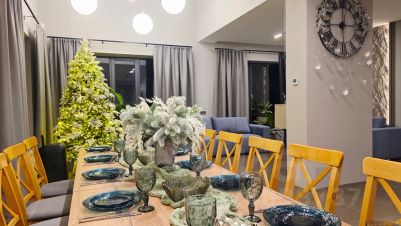 - В гостиной расположен большой обеденный стол на 12 человек с возможностью увеличения до 20 человек. Для отдыха и просмотра тв- удобные диваны, игровая приставка, караоке, проэктор. Для любителей музыки и танцев есть музыкальная колонка jbl. Но помните, что время для громкой музыки на улице строго регламентируется законом о тишине.