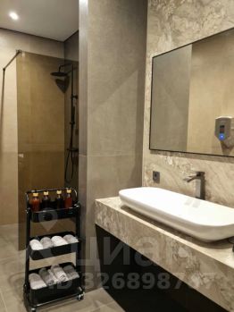 - Санузел 1 этажа оборудован душевой кабиной с термостатическим смесителем, инсталляцией. В санузле имеются необходимые средства гигиены: шампунь, гель для душа