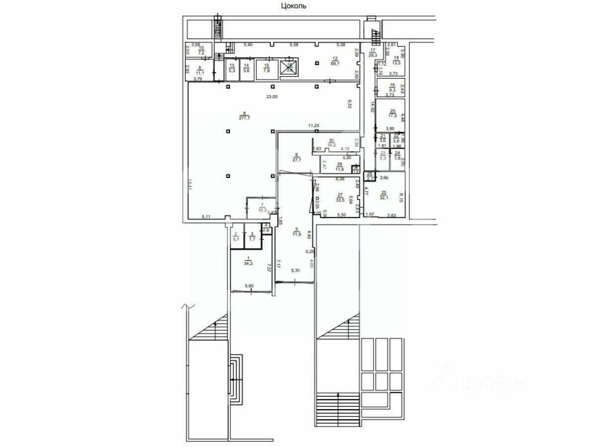 цоколь - 737,3 кв. м.,