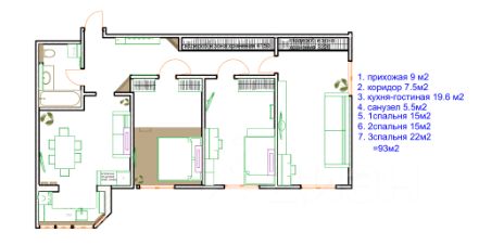 Эксклюзивная планировка профессионального дизайнера-художника помогла максимально комфортно использовать пространство, сделав из него просторную и светлую 4 комнатную квартиру с двумя детскими комнатами, спальней и кухней-студией.