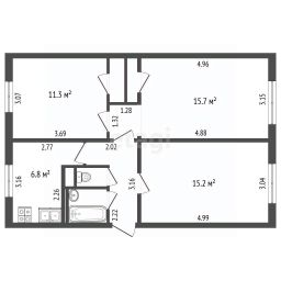 Площадь квартиры составляет 60,4 м², что позволит вам с комфортом разместить всю семью. Просторная кухня площадью 6,8 м² станет отличным местом для семейных ужинов, а изолированные комнаты (15,3 м², 15,7 м² и 11,3 м²) подарят каждому члену семьи личное пространство. Светлая и уютная гостиная станет центром вашего домашнего уюта. Раздельный санузел добавляет удобства в повседневной жизни.