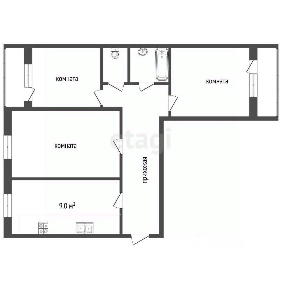 Просторная кухня с вместительным кухонным гарнитуром 9 кв.м, гостиная 18кв .м, спальни 14 кв.м с выходом на лоджии, санузел раздельный.
