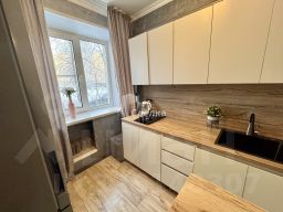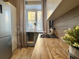 На кухне свежая сантехника, остаётся вся мебель и новая техника (встроенная, современная ), что экономит ваши деньги и время. Продуманные дополнительные ниши увеличивают полезное пространство для хранения.