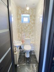 Дом, построен в 2022 году из качественного газоблока, фундамент - плита 40 на песко-щебневой подушке, произведена дренажная система на участке под домом,сделана отмостка. Стены фасада отштукатурены, крыша 4х-скатная из металлочерепицы.