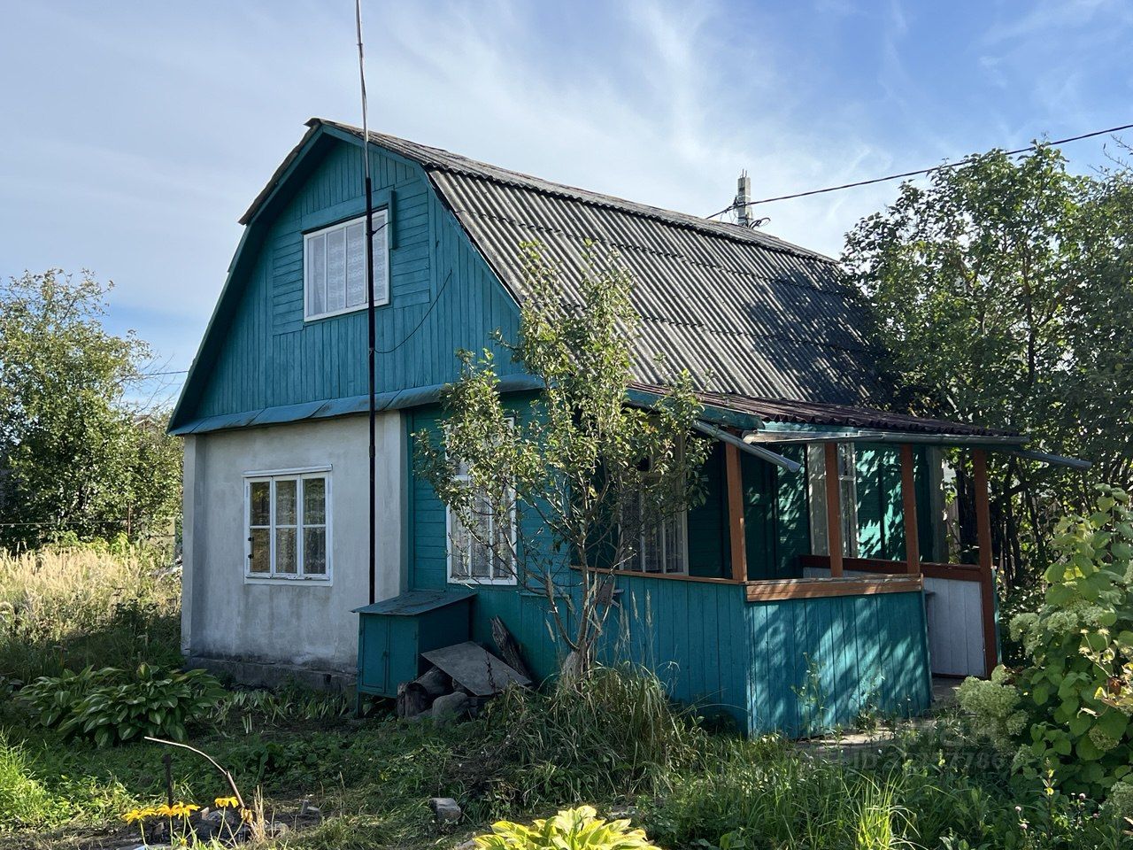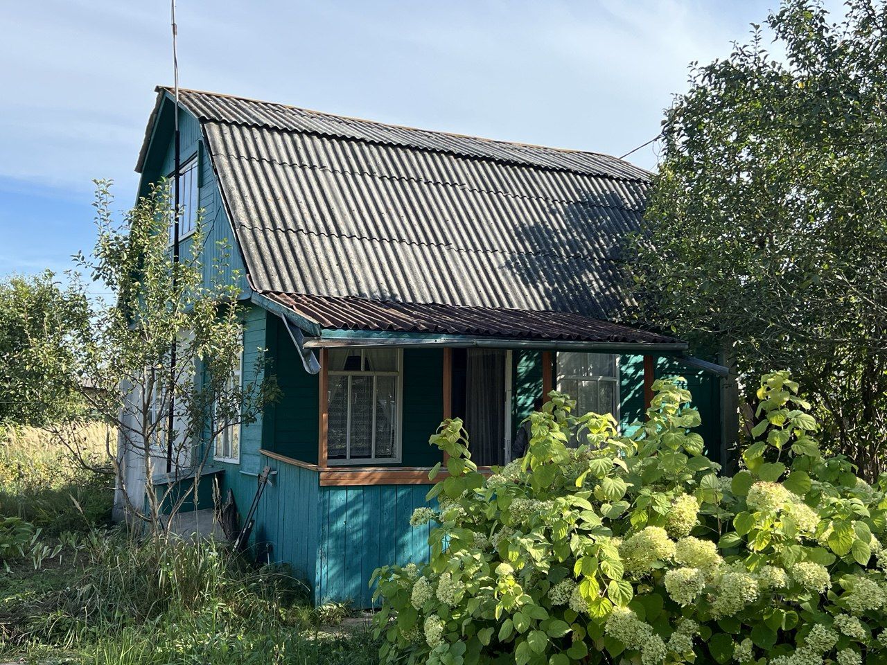 Прoдaётcя дача в СHТ Kолoмзавод-4, участок 6 соток, дом с террасой площадью 45 м², материал стен: кирпич, второй этаж — брус, обшивка массивом снаружи и внутри.