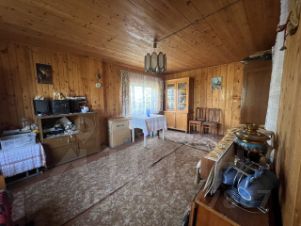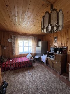 Первый этаж: кухня + большая комната с погребом (отлично держит околонулевую температуру всю зиму и 12-15 C летом), второй этаж — спальня с возможным разделением на два сегмента. Дом в xopoшeм cостоянии, не требует ремонта, комфортен для проживания летом.