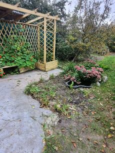 Окна дома смотрят на собственный ухоженный участок с большим количеством плодовых и декоративных многолетних растений площадью 400м2.